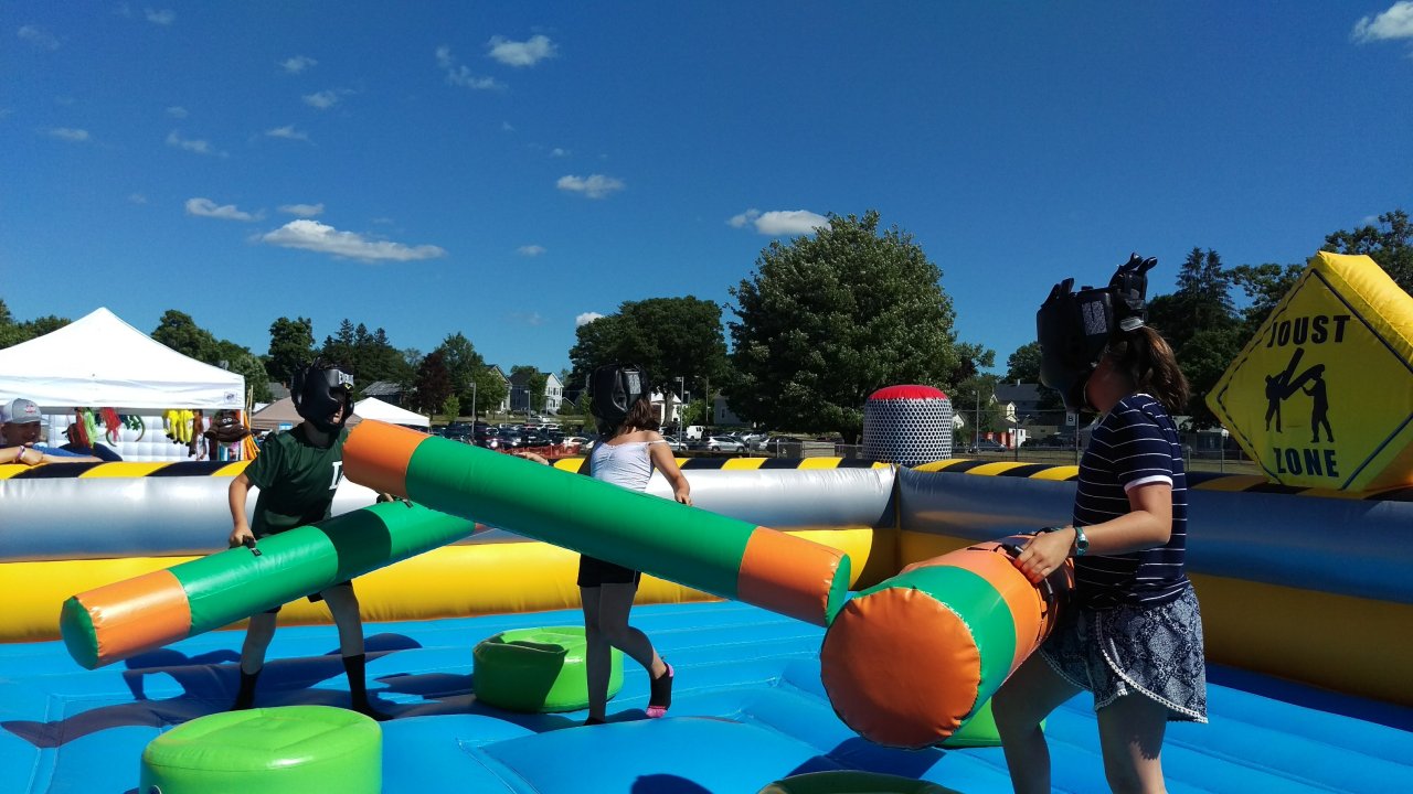 Adam, Annabelle and Amelia celebrating July 4th and Laconia’s 125th Anniversary with bouncy bash.