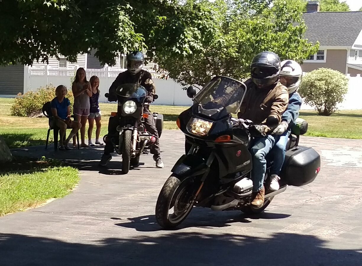 My dad, with Annabelle on the back, and Wayne, heading out for a motorcycle ride. I’ll let the girls share more about their rides.