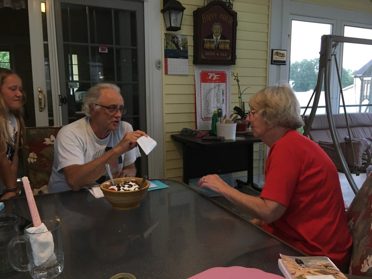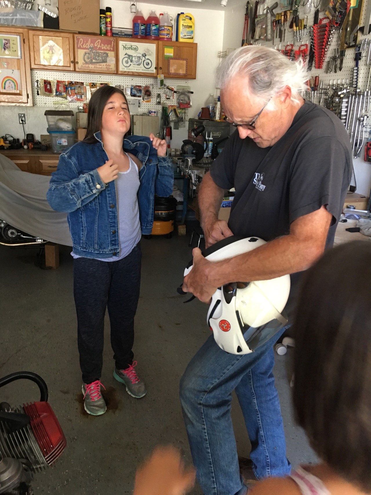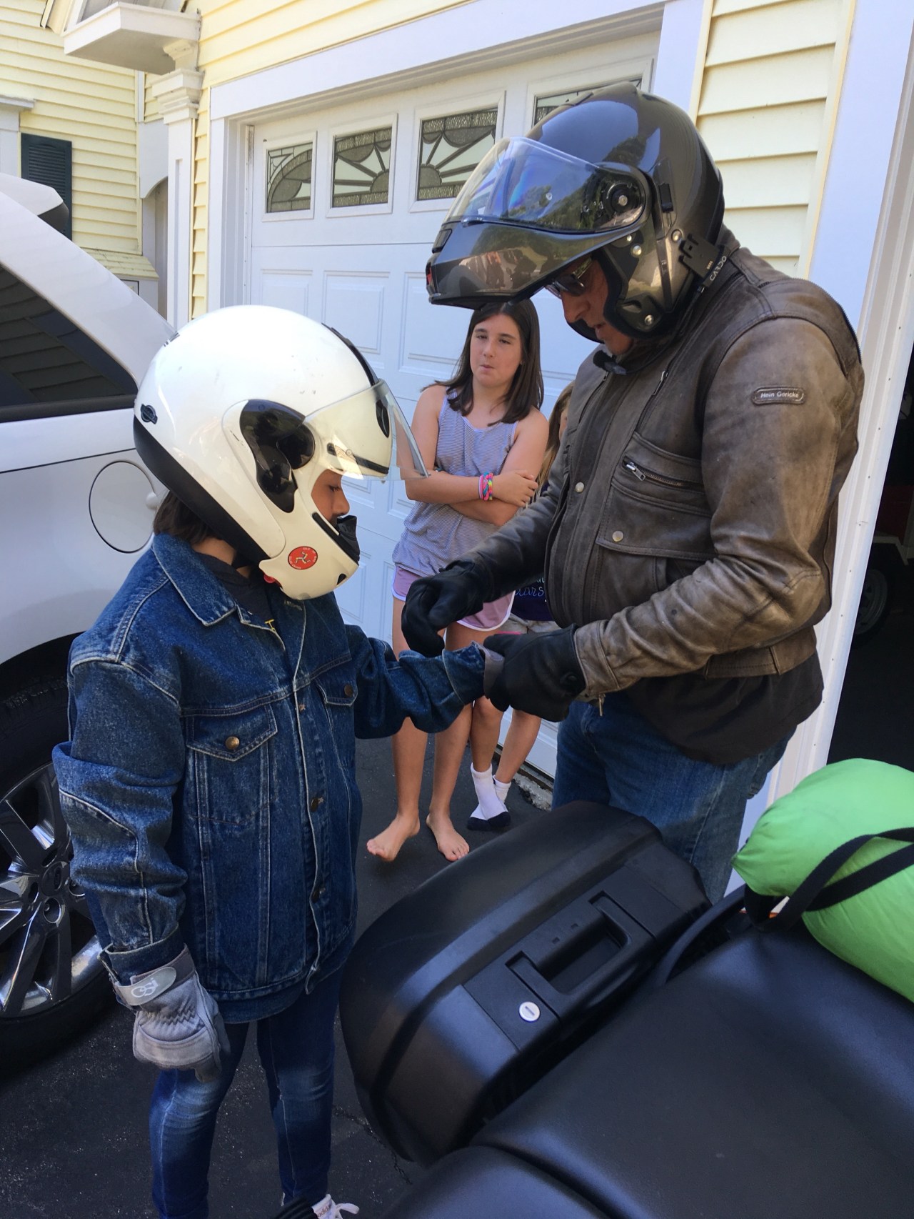 How it all started, was when my daredevil sister asked my grandpa, who loves motercycles, riding them, and anything related to them, if she could ride on the back of his motercycle. At the time, I thought she was crazy, riding out in the open, with no protection from traffic, or anything really, but my grandpa agreed to take her on a ride. I watched her get onto the back of his motorcycle, happy that I had both feet on the ground. I watched as they rounded the corner of the driveway and then went back inside. I was happy to be making friendship bracelets with my youngest cousin, Erin, while they were on their ride. When they came back, my sister ran into the screen room, and was talking/yelling really fast. She was saying things like, “That was so fun, Amelia if you don’t do this you’re going to miss out, you’ll never get to do something like this again, etc.” I suddenly felt like I WAS going to miss out, so I ran into the driveway and shouted, “I’ll do it!” So, 5 minutes later I was on the back of my grandpa’s motorcycle questioning my choices. On one hand I was ecstatic to be riding on the back of a MOTORCYCLE, but the other half of me was terrified to be riding on the back of a MOTORCYCLE. My grandpa started the engine, and we were off! At first, I was so scared. I was gripping the hems of my grandpa’s shirt so hard, I thought that I would rip the fabric. After about 2 minutes, I was having the time of my life. We rode around town for a little bit, and soon we were rounding the corner of the driveway. I got off the motorcycle and shouted, “THAT WAS AWESOME!!!!!!”:)