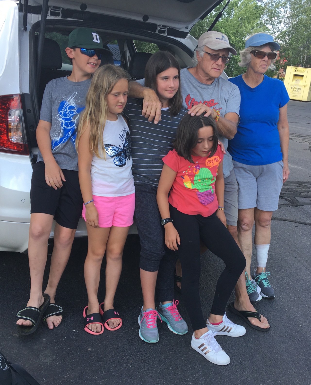 Every summer, we go to New Hampshire to see our cousins, aunt, uncle, and grandparents. My grandparents own a big house, and right down a big grassy hill (That is usually more like hay because it is so hot) there is a pretty big lake called Opeachy Bay. Every year we swim in it more than half of the days we are there. There is a beach that has a pretty big swimming area, and right at the end of the swimming area, there is a float. That float is so awesome because you can do so many things with it. You can jump off of it, you can go under it, you can push people off of it, sunbathe on it, ect. One amazing thing that all 4 cousins (Amelia(12yrs), Adam(11yrs), Annabelle(10yrs), and Erin(9yrs)) did, was jump off of the back of it, and swim ALL THE WAY ACROSS. Not only that, but we swam ALL THE WAY BACK too! Even the younger cousins, and none of us needed the support crew (paddleboards) once! I call that AMAZING swimming! Other things that we enjoy doing on the lake include, water gymnastics, paddleboarding, looking for fish, swim races, dive sticks, building sandcastles, and much more. Thank you Lala and Pa for hosting us! We had a GREAT time, and love you very much!