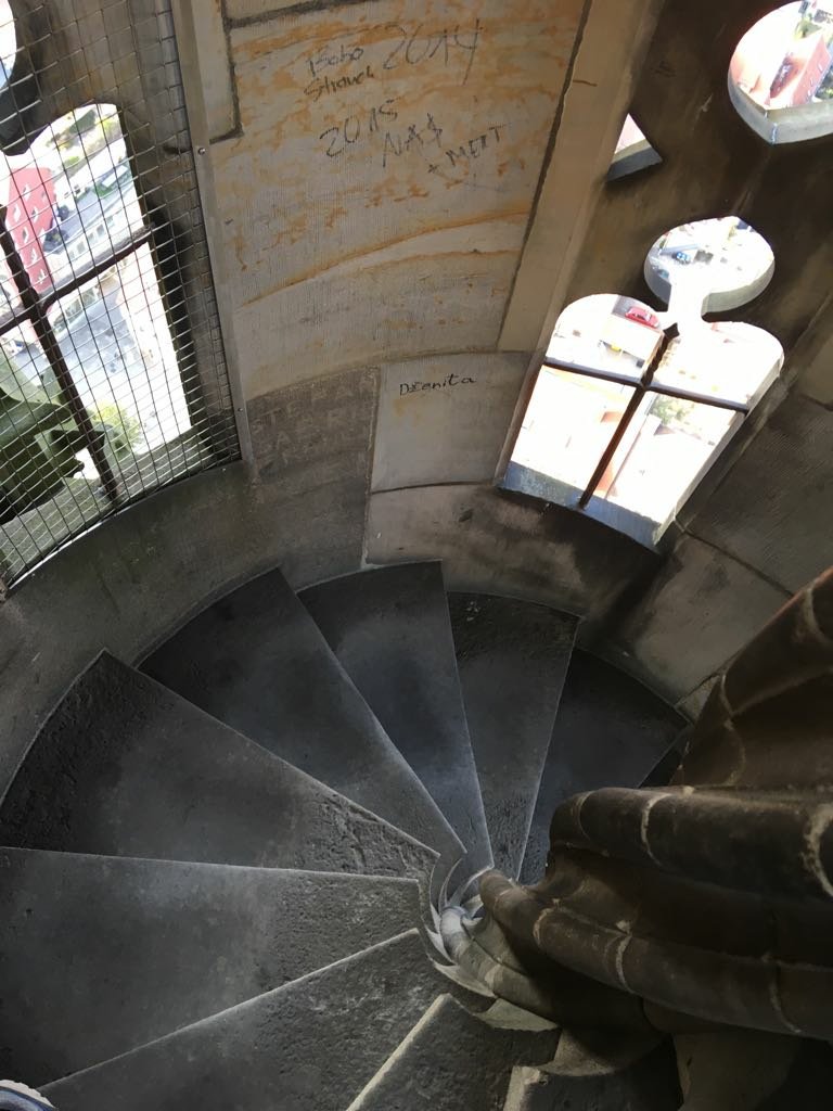 Anyway, we left our hotel room in search of the church steeple. (It wasn’t very hard to find) The steeple apparently had 768 steps, so I decided to count them to see if that was right (assuming that my counting job was right😋) We paid the fee and started up the steeple. It made all of us very dizzy, because the staircase was a very narrow, spiraling staircase up to the top. I took lots and lots of pictures, the quality of them depending on how dizzy I was.😁🤪