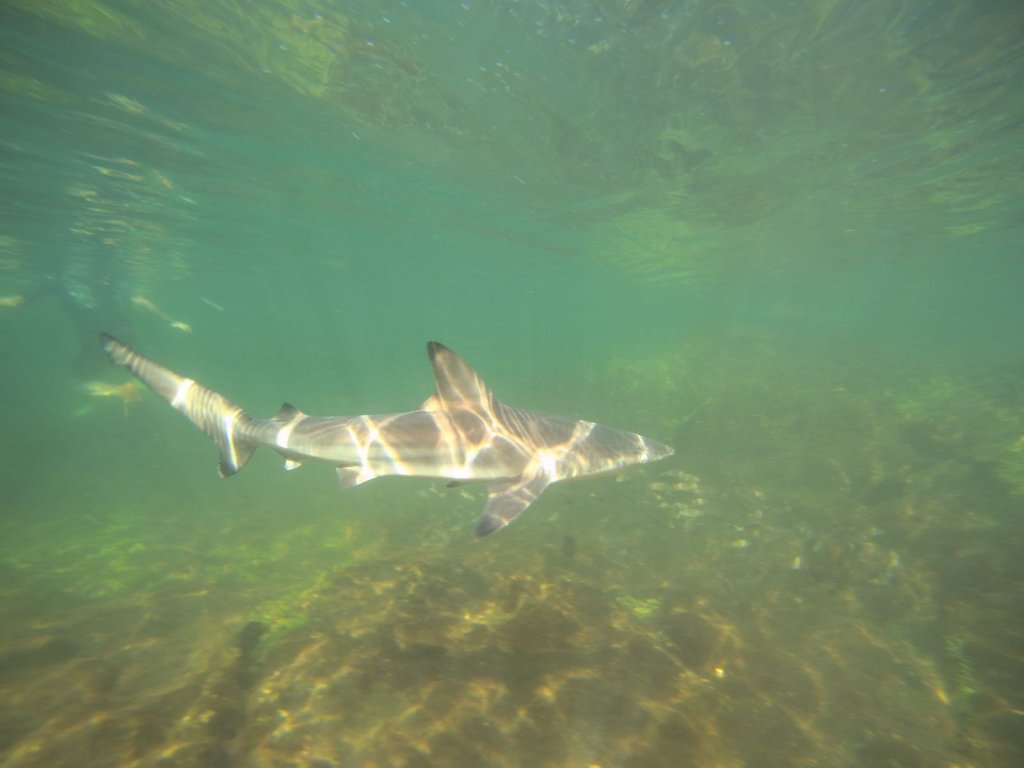 Snorkeling in the Galapagos in the deep blue sea,